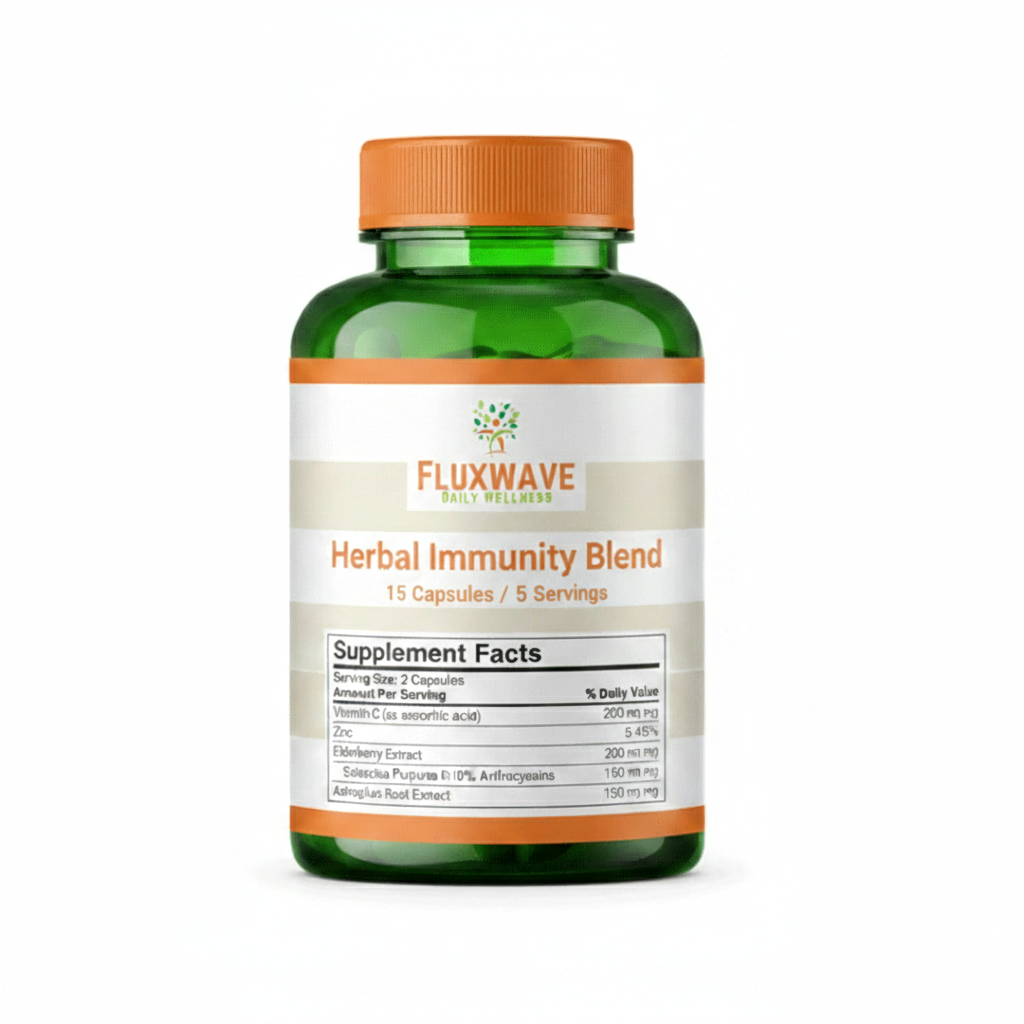 Herbal Immunity Blend is a combination of traditional botanical extracts designed to support healthy immune system function. This formula may help maintain the body’s natural defense mechanisms, might support respiratory health during seasonal changes, and may provide antioxidant protection from environmental stressors. With elderberry, echinacea, astragalus, and garlic extract, this daily supplement might also support individuals seeking plant-based immune support.